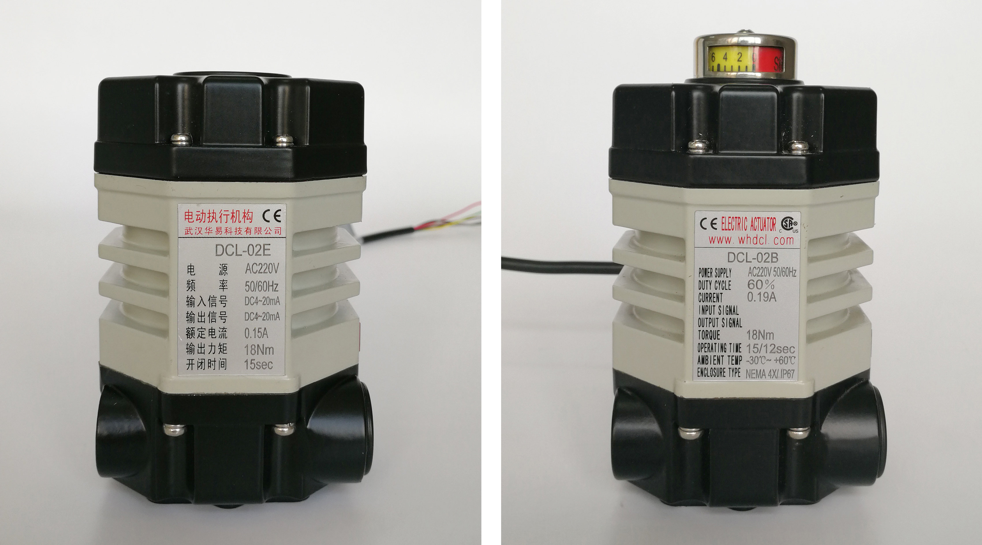 DCL-02B can be used to drive valve or swinging arm with full range angle that is no more than 90 degree. The motor is automatically stopped by internal cams striking limit switches. Two more passive contact auxiliary limit switches are added to confirm valve position. Very compact size with unique design, the last stage drive with worm gear to insure self-locking.